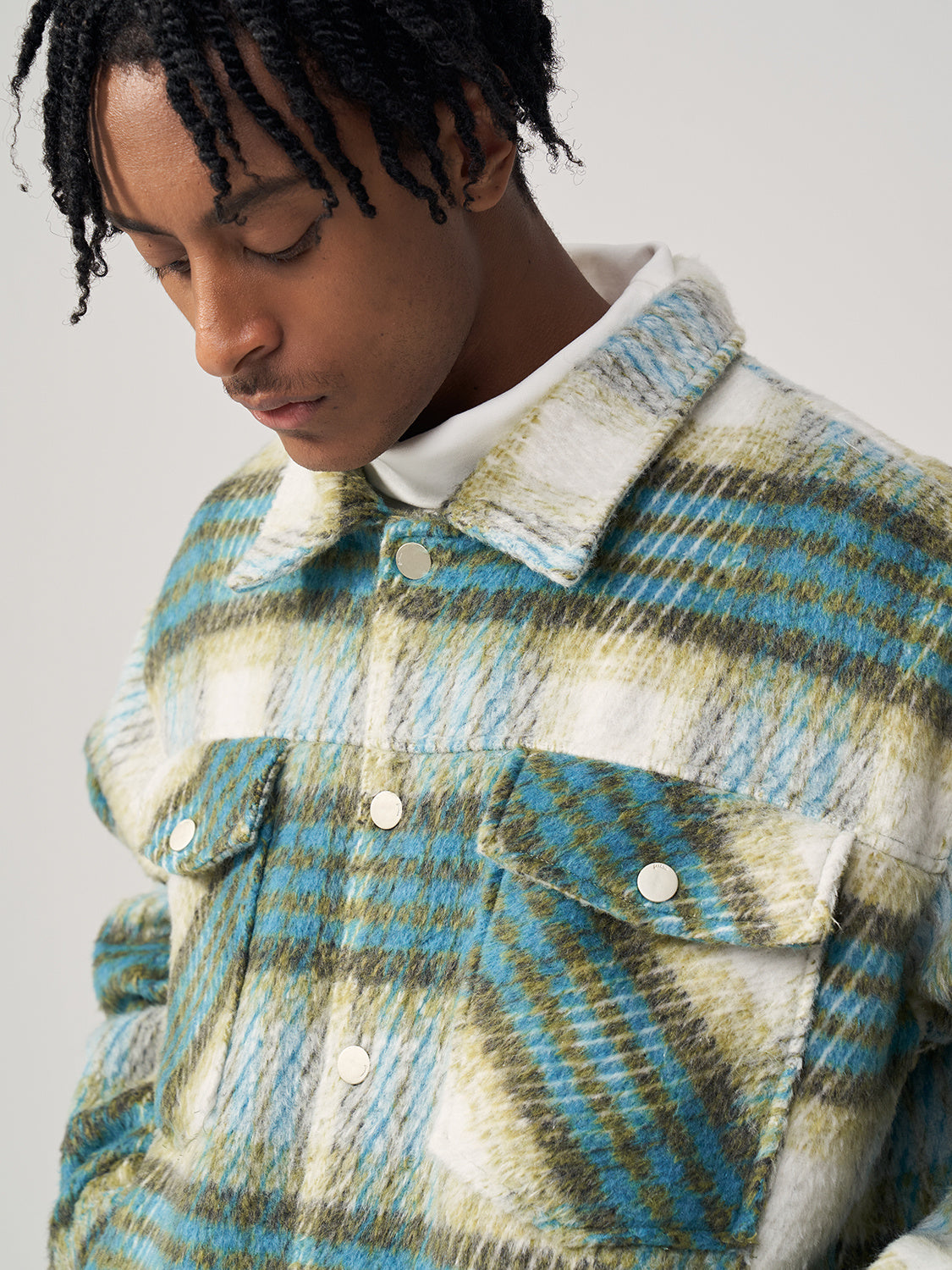 Cette surchemise ample combine un design à carreaux classique avec un confort moderne. Conçue dans un mélange de laine épaisse et de coton, elle offre une couche chaude et durable pour les journées fraîches. Parfaite comme veste légère ou comme couche supplémentaire à l’intérieur.